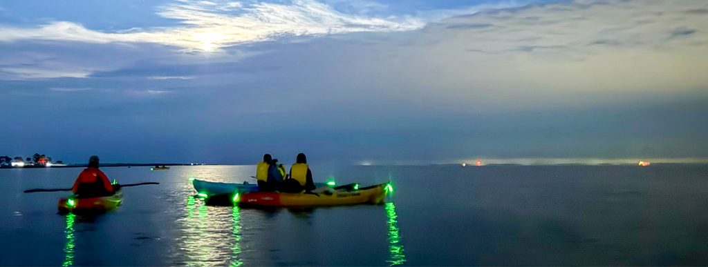 Glide through Westport Harbor under the light of a full moon.